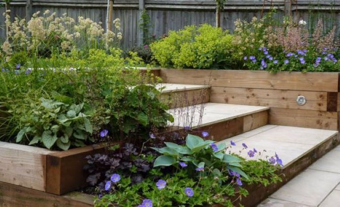 Aj kaskádový záhon pri schodoch môže mať svoj pôvab.