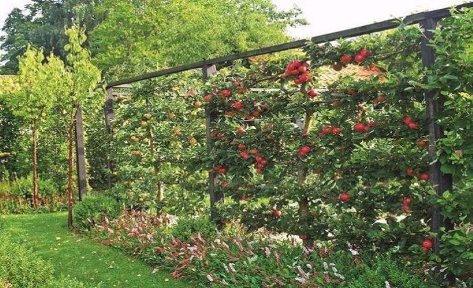Tento nádherný živý plot je vytvorený z jabloní. Prednosti tohto plotu snáď ani nie je potrebné rozoberať. Krása, úžitok, funkčnosť. Je však potrebné zvoliť rýchlejšie rastúci podpník ako napríklad MM106.