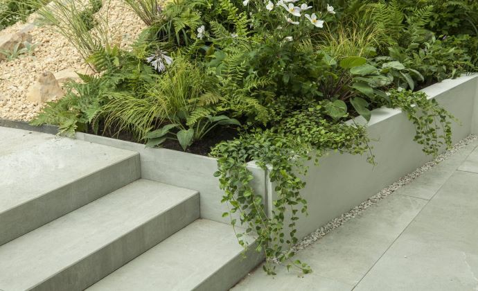 Na malom priestore sú vysadené rôzne druhy trvaliek, ktoré vytvárajú plastickú štruktúru.
